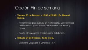 Tercer Seminario Curso Avanzado de Homeopatía: Remedios vegetales y minerales y su relación con la tabla periódica
